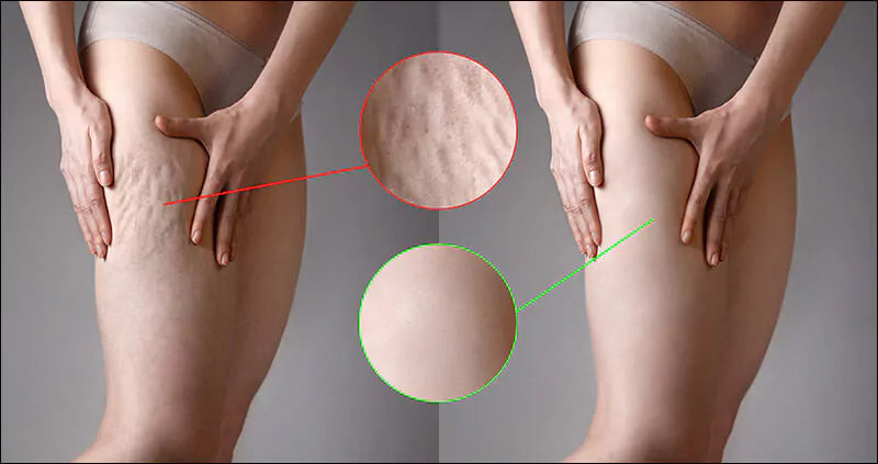 Suction causes fat breakdown and stretches the tight collagen bands that cause dimples. Increased blood flow reduces swelling and clears toxins. The red LED light also helps promote collagen synthesis.